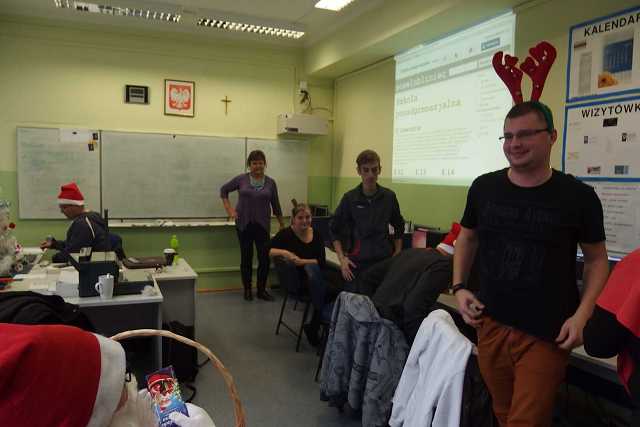 Święta Bożego Narodzenia powinny uczyć dobroci dla innych. W związku z tym, Samorząd poprosił klasy by przygotowały dla siebie prezenty. Warunkiem było własnoręczne przygotowanie prezentów a nie tylko kupienie. Cała akcja zaangażowała uczniów we wspólnym bezinteresownych i kreatywnym działaniu. Efektami będziemy mogliśmy się cieszyć w czasie uroczystej Wigilii Szkolnej.