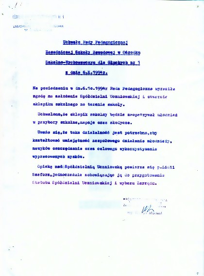 Spółdzielnia uczniowska Łasuch w naszej szkole funkcjonuje od roku 1995. Założycielką Spółdzielni była p. Lidia Szaforz, która opiekę nad Spółdzielnią sprawowała do 2002 roku.